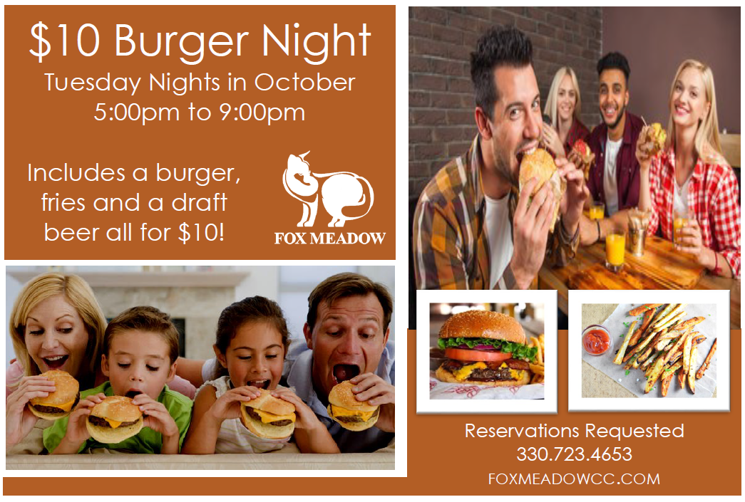 $10 Burger Night Tuesday Nights in October